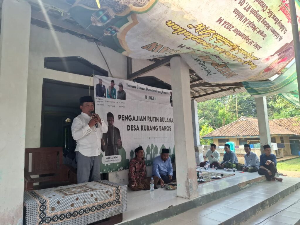Kubang Baros, 12 Oktober 2025 – Pemerintah Desa Kubang Baros kembali melaksanakan kegiatan pengajian bulanan yang bertempat di Masjid Kampung Malang Nengah, pada hari Minggu, 12 Oktober 2025. Kegiatan ini berlangsung dengan penuh khidmat dan dihadiri oleh para tokoh agama, perangkat desa, serta jamaah pengajian dari berbagai kampung di wilayah Desa Kubang Baros.